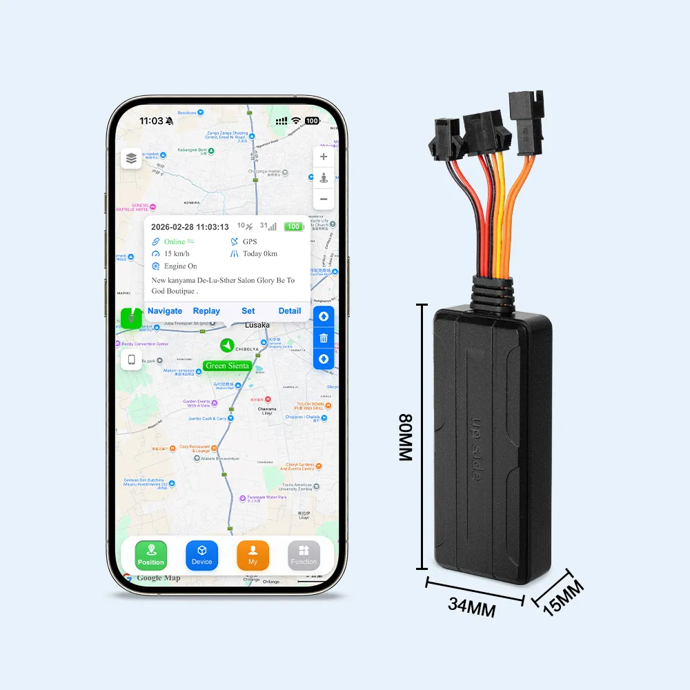 Vibration, overspeed, power loss and electronic fence alarm with SMS/call alerts.